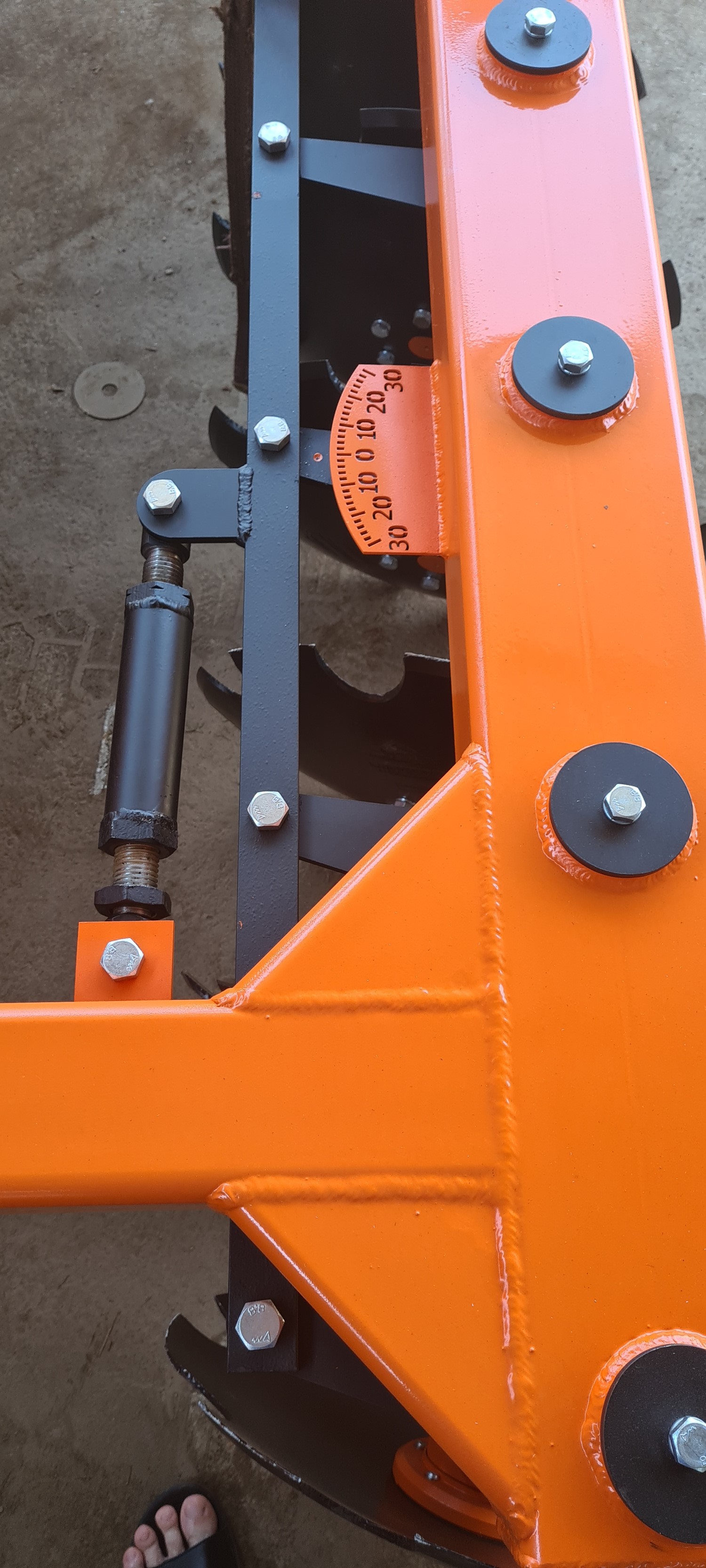 • угол атаки всех дисков в пределах 0-30 градусов в каждом ряду регулируется одновременно при помощи специальной регулировочной планки и стяжки бесступенчато с контролем значения угла по шкале.