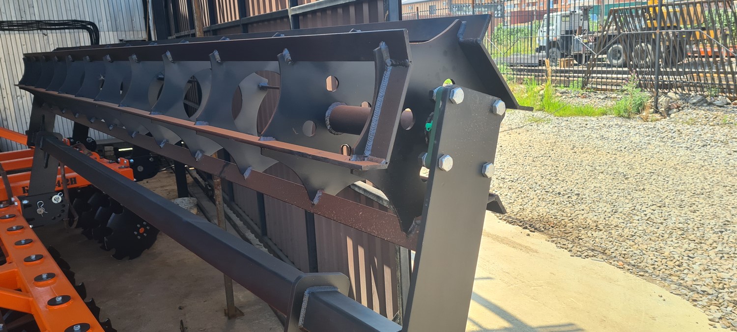 Несущая рама бороны в контурной части изготавливается из профильной трубы 150х100х6 мм. с дополнительными уголками и раскосами.